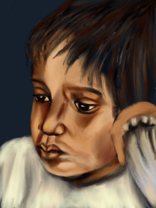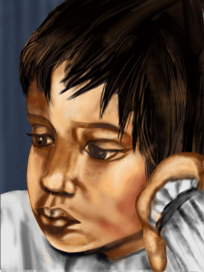 Using a few art apps that have been languishing in my old iPad, I also decided to reproduce an oil painting I did of my son when he was six or seven years old. I like this painting a lot because I caught him in an unusually pensive mood. Besides, once in a while, I get nostalgic about old times.