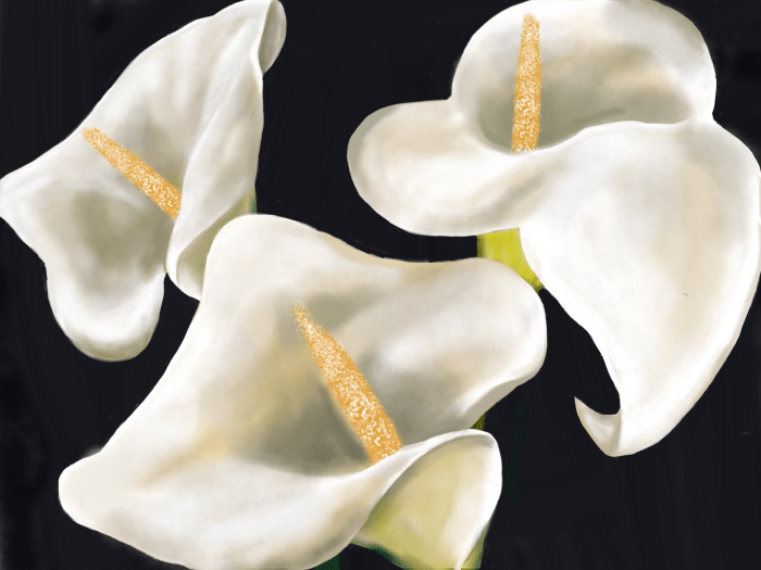 I’m very far from counting myself among those masters, but I do see how easy it is to get mired in one subject matter. For me, recently, it’s the calla lily. Which I think also fascinated Diego Rivera. I don’t know what drew him to it. For me, it’s line, first all. That sinuous arabesque. After that, in this digitized virtual reality world we live in, it’s trying to nuance white in digital art-making.