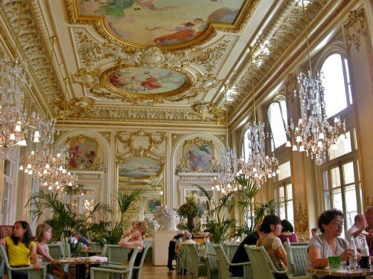 The soup was mildly peppery—the leeks not at all overwhelmed by the peppercorns. So I took it to the dinner table with a small cup of crème crue (fresh cream, heated but not pasteurized; essentially raw) we picked up at La Ferme Saint Aubin, a neighborhood fromagerie. The soup was delicious, much better than the onion soup I had at the restaurant at Musée d’Orsay. (An aside, eat or, better still, just have tea here for the beautiful room and its ambience. As for the food, we’ve definitely tasted better.)