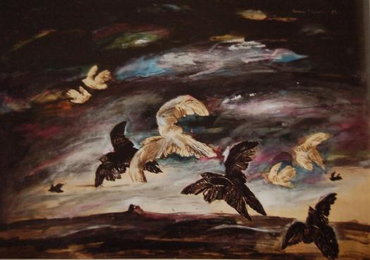 Wartime experiences, images from childhood and youth contained in enduring fears and dreams, an oppressive claustrophobic obsession, all processed creatively, are reflected in enclosed spaces: walls, parks, walls without doors or windows, planes suspended overhead……