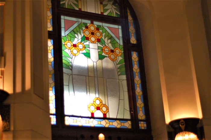 This incarnation of art nouveau integrates some neo-renaissance, baroque, and art deco touches with the characteristic art nouveau feature—sinuous, organic lines associated with motifs derived from nature. You see this in the exterior windows, for instance.