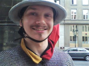 He is multi-talented, telling us he learned his English (quite good) from watching television and talking to tourists. He proudly announced he made his metal vest himself, patterned after medieval vests used in jousting and battle. He has played in a modern tournament.