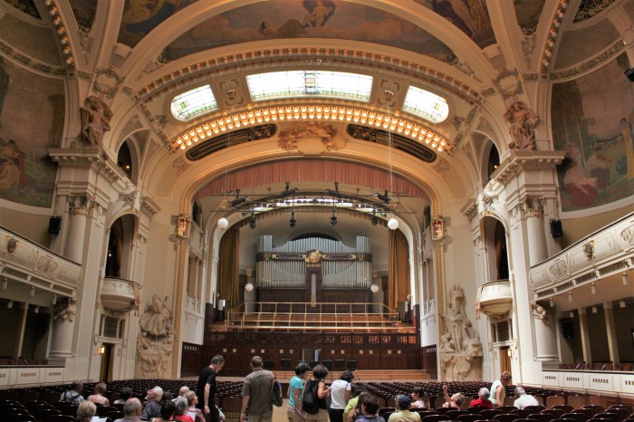 In contrast, except for one done in a related art deco style, every room in this large public space, including a concert hall as well as a café, is a Czech rendition of art nouveau.